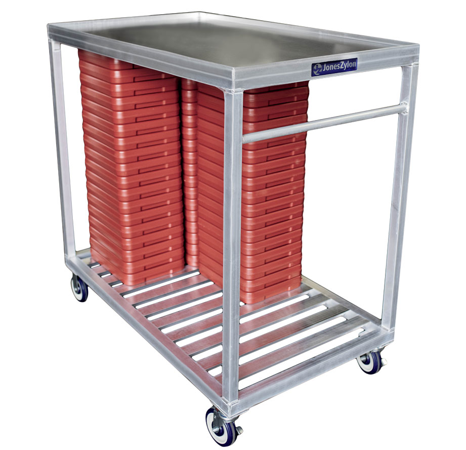 | CAFETERIA TRAY STAGING CART | JZSCA-1 | Height: 48” / Width: 43” / Depth: 27” | 200 any type cafeteria tray (e.g. JonesZylon PPST-28) |